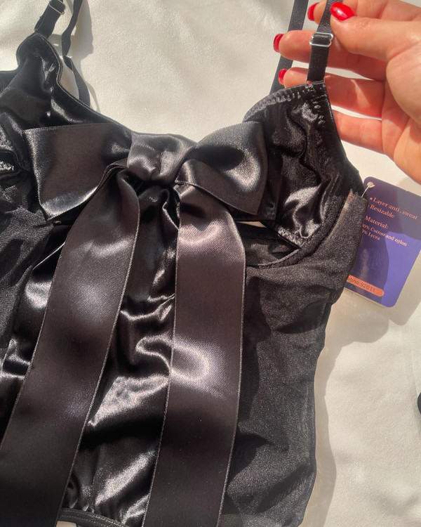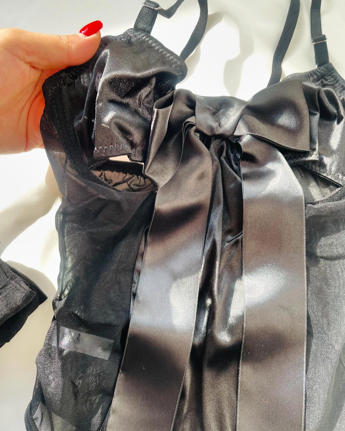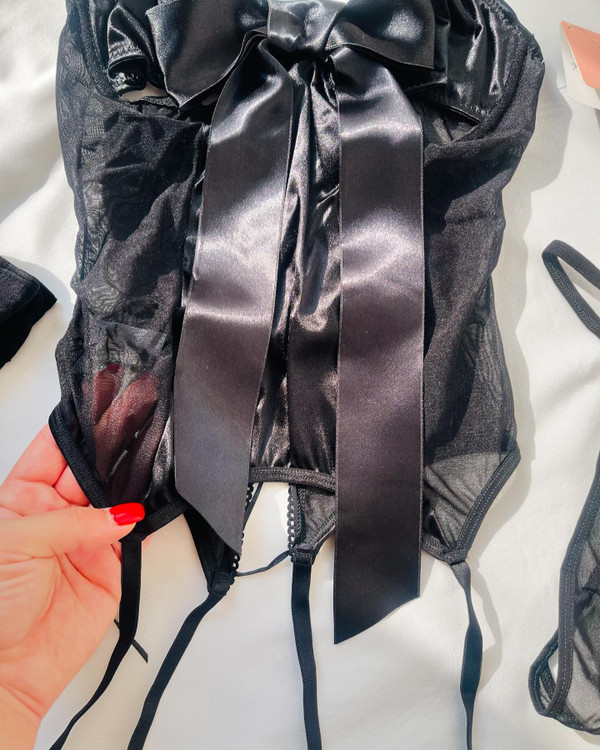 چوراب داره که بند جوراب بهش وصل میشه قسمتای بغل لباس توری و وسط ساتنیه که زیر سینه فنرداره همه تیکه ها قابلیت تنظیم داره بپوش و حسابی باهاش دلبری کن رنگبندی مطابق تصویر سایزبندی در دو سایز L(سایز کمر 36تا40)سایزxl(سایز کمر 42 تا 46)موجوده