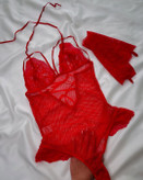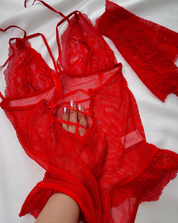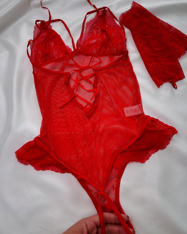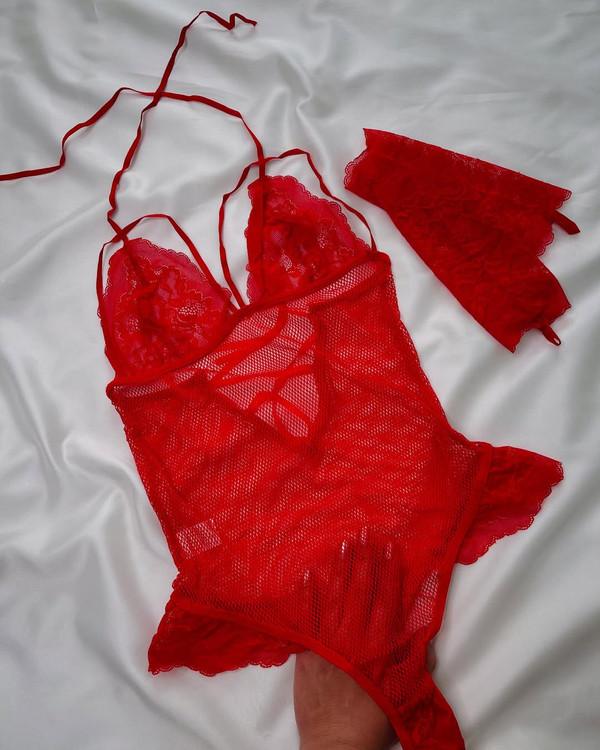 این لباس خواب همراه ساق بند و فاقش هم باز است