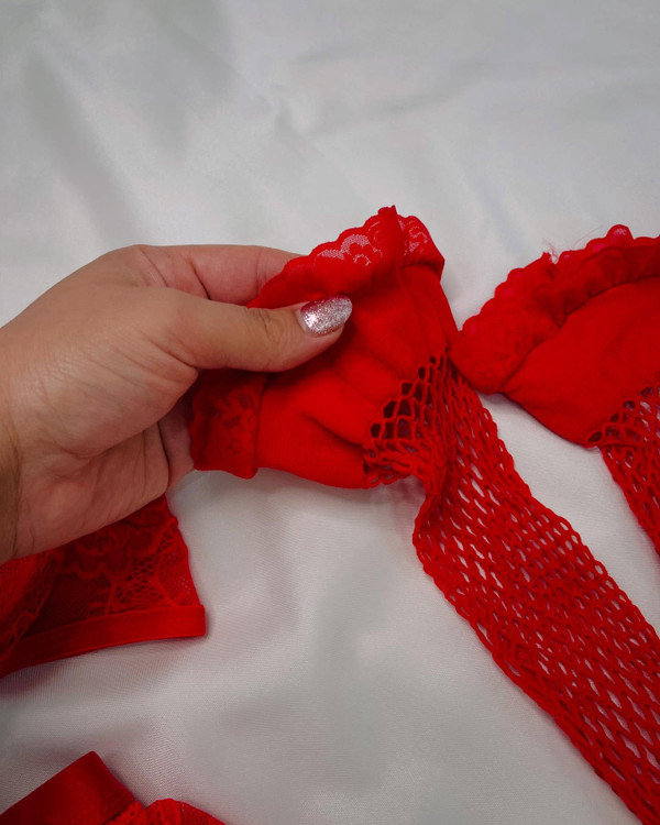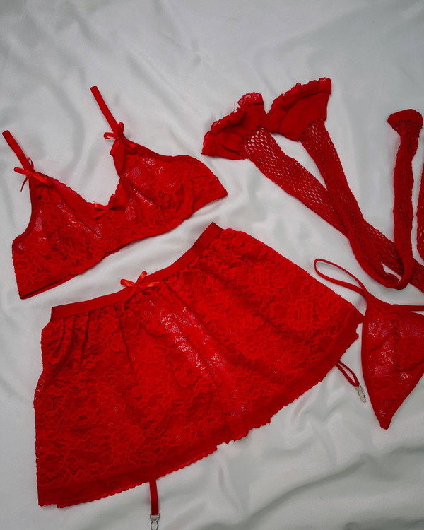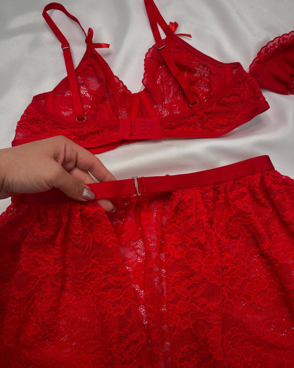ست دامن دار۹۰۱۶ که بند جوراب به دامن متصله و قابلیت تنظیم داره جوراب توری بالا گیپور داره دامن از پشت قزن میخوره و چاک داره مدل شورت لامباداس سوتینش فنرداره در دو سایز L,xl (مناسب سایز کمر ۳۶ تا ۴۴)