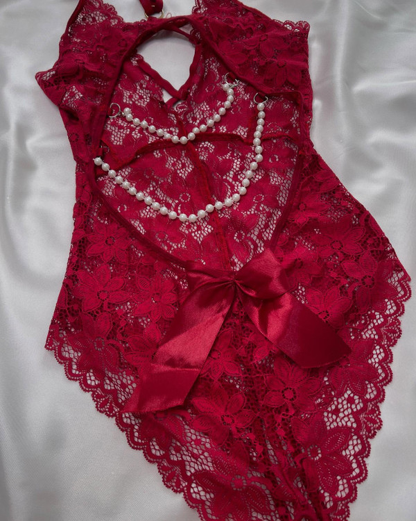 لباس خواب فاق باز 5140 کاملاگیپوری مرواریدها روی کمر میافته بپوش حسابی دلبری کن جنس گیپورش لطیفه و پوست و اذیت نمیکنه در دو سایز L و XL (مناسب سایز کمر ۳۶تا۴۴)