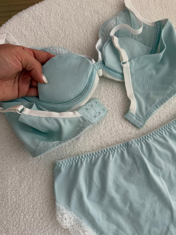 ست صدف لطیف و خوشفرم، درست مثل حس خوب پوشیدنش ست لباس زیر گیپوری آبی آسمونی، با طراحی خاص و بندهای فرمدهنده سینه داخل سوتین یه پد لیفت داره که میتونی درش بیاری، پس هم برای فرم دادن خوبه، هم برای راحتی روزمره سوتین فنردار برای فرمدهی بهتر پد قابل جدا شدن، کاملاً نخی و تنفسپذیر شورت گیپوردار نرم و سبک سایزبندی: ۸۰-۸۵ F سفارششده از اروپا؛ یه انتخاب خاص برای خانومهای خاص یه انتخاب جذاب برای خودت یا یه هدیهی خاص برای کسی که دوستش داری برای بده