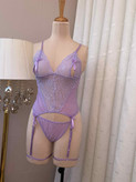 💋 لباسخواب سرهمی گیپوری با بند جوراب متصل و شورت لامبادا
