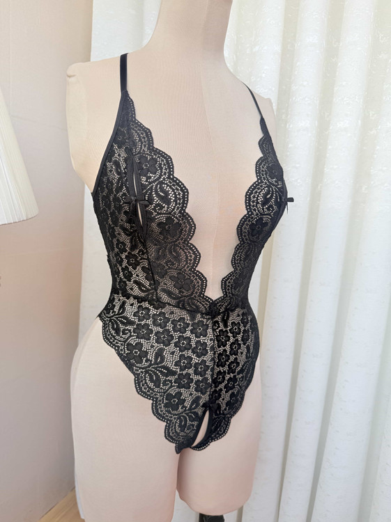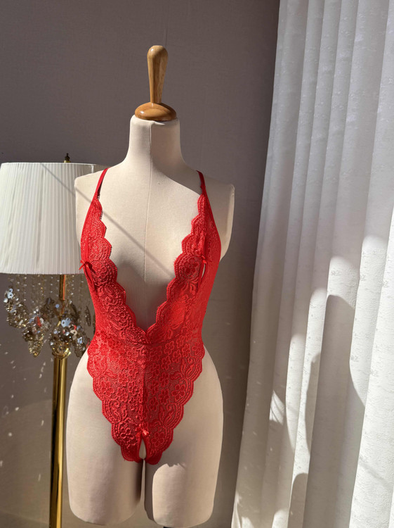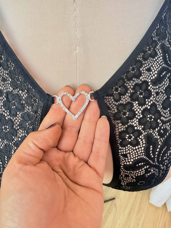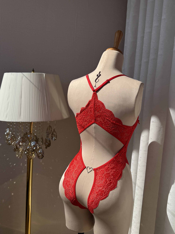 این مدل از گیپور لطیف و کشی دوخته شده که به زیبایی روی بدن مینشینه و به خاطر طراحی خاصش، جذابیتت رو چند برابر میکنه. پشت کار با نگین قلبی تزئین شده که جلوهای خاص و رمانتیک بهش داده.